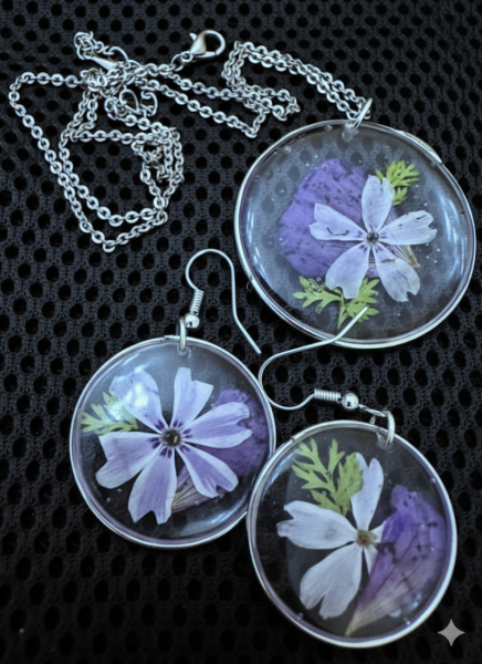 Discover the beauty of nature captured in timeless elegance. Our handcrafted resin earrings and necklaces encase delicate dried flowers in stunning sphere-shaped designs, preserving their charm forever. Wear a piece of nature and elevate your style effortlessly.